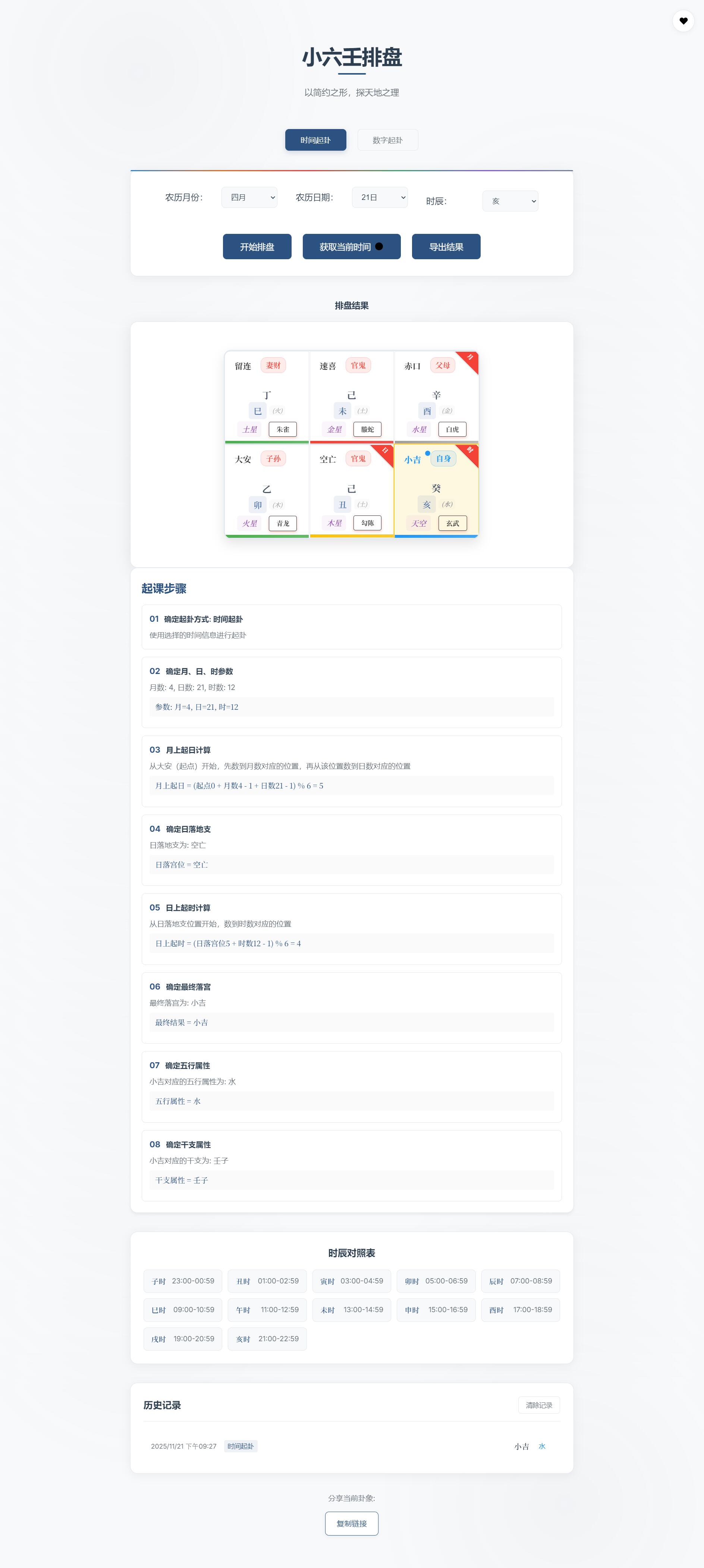 用AI辅助开发了个小六壬排盘网站,现在开源分享工具功能