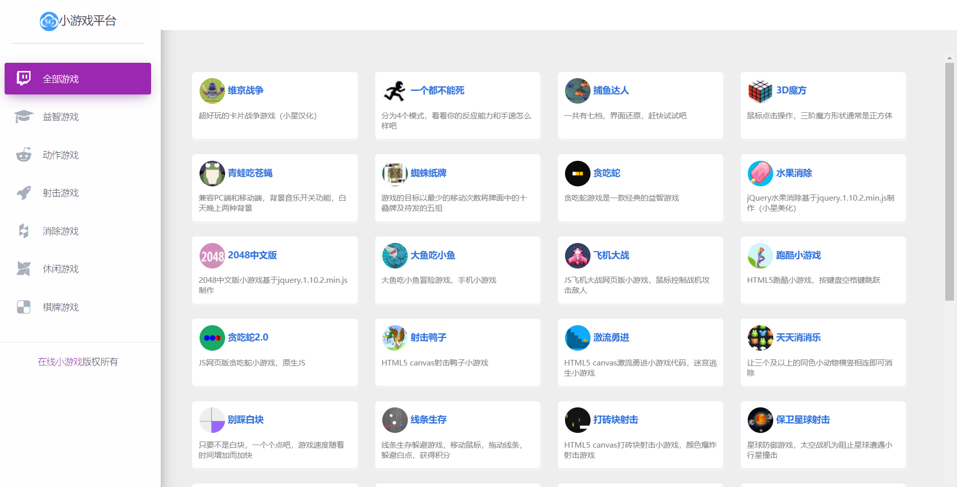 小游戏平台网站源码