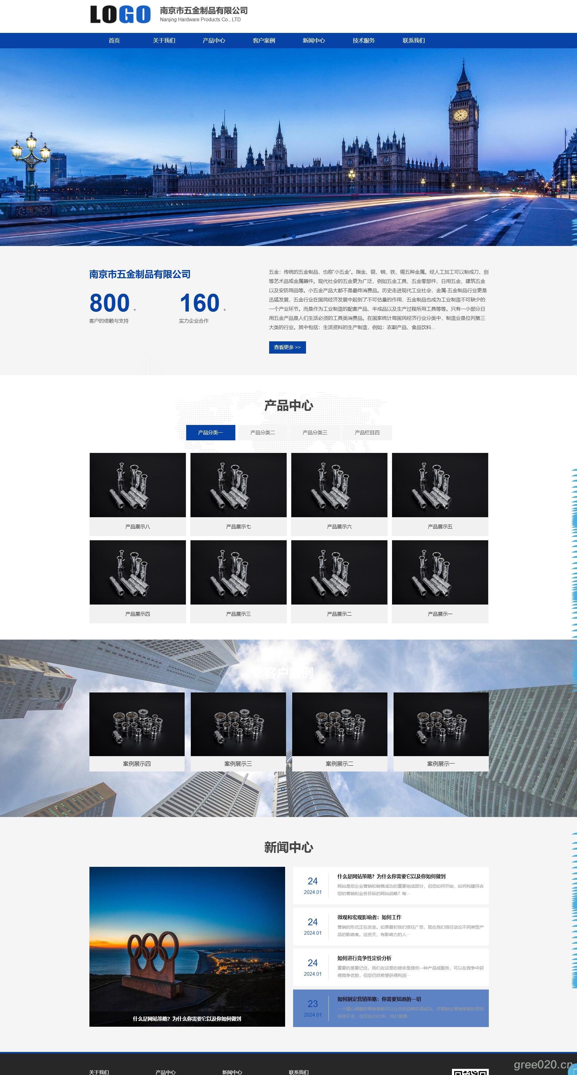 蓝色五金制品网站模板 企业通用网站源码下载