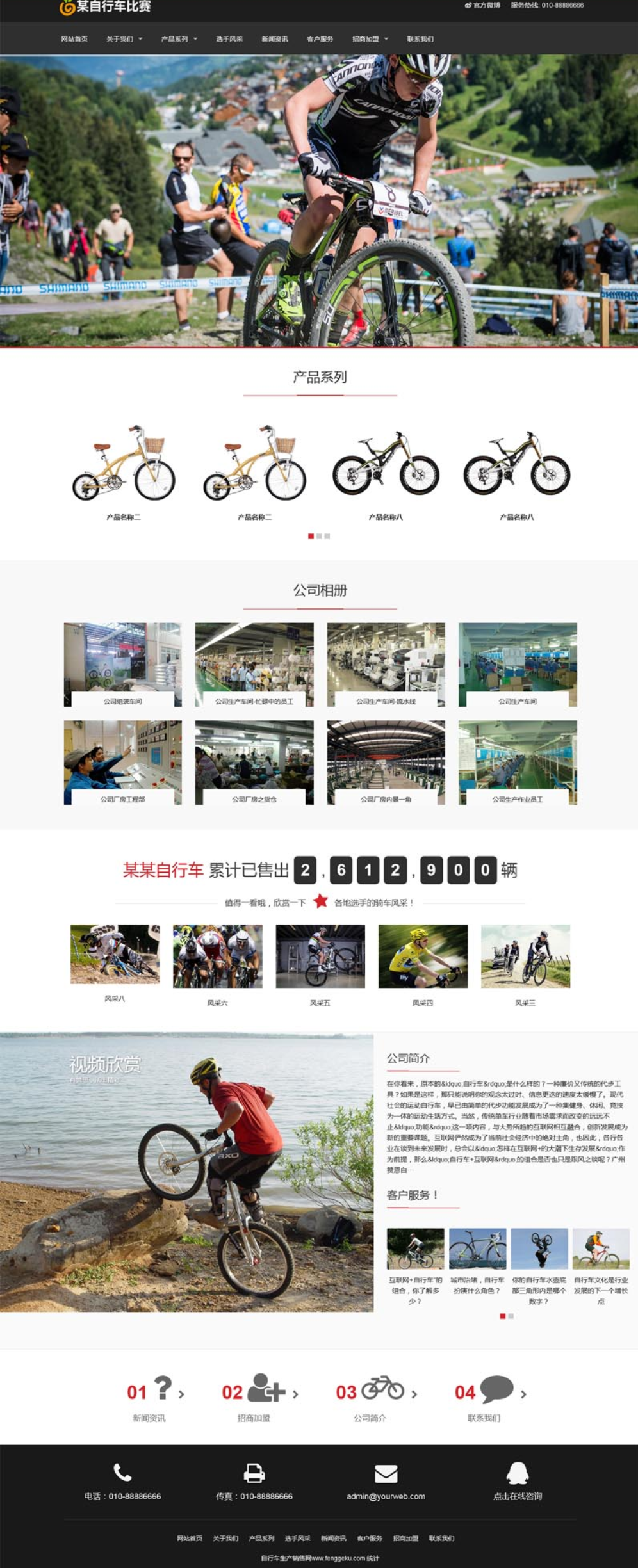 休闲运动品牌自行车网站模板 自行车生产销售网站源码下载