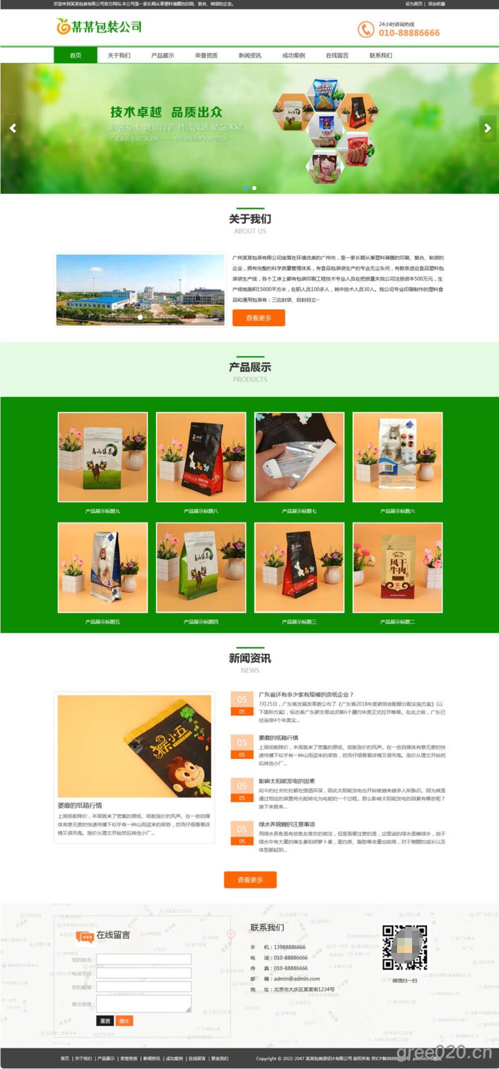 包装袋设计网站模板 绿色印刷造纸网站源码下载