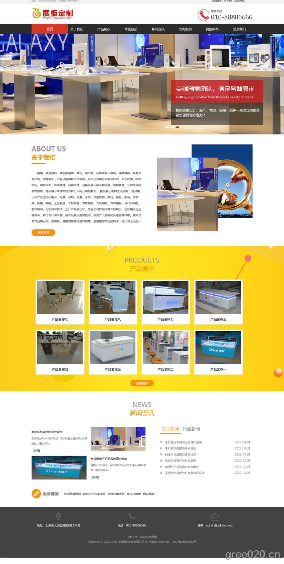 电子产品展示柜台装饰设计网站模板 手机专柜卖场展柜制作网站源码下载