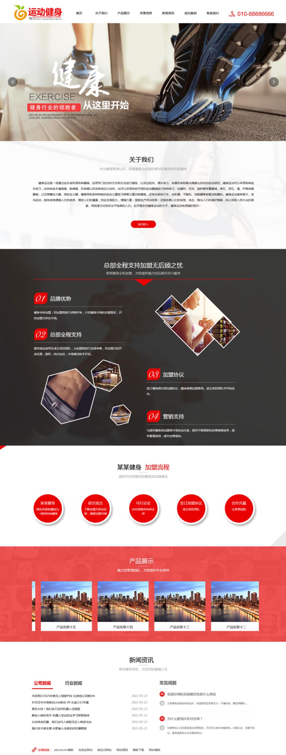 运动健美健身网站pbootcms模板 健身房项目加盟店类网站源码下载