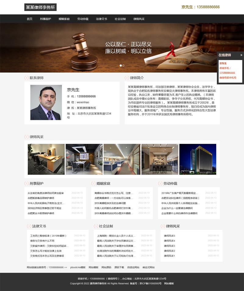 个人律师类pbootcms网站模板 律师事务所网站源码下载