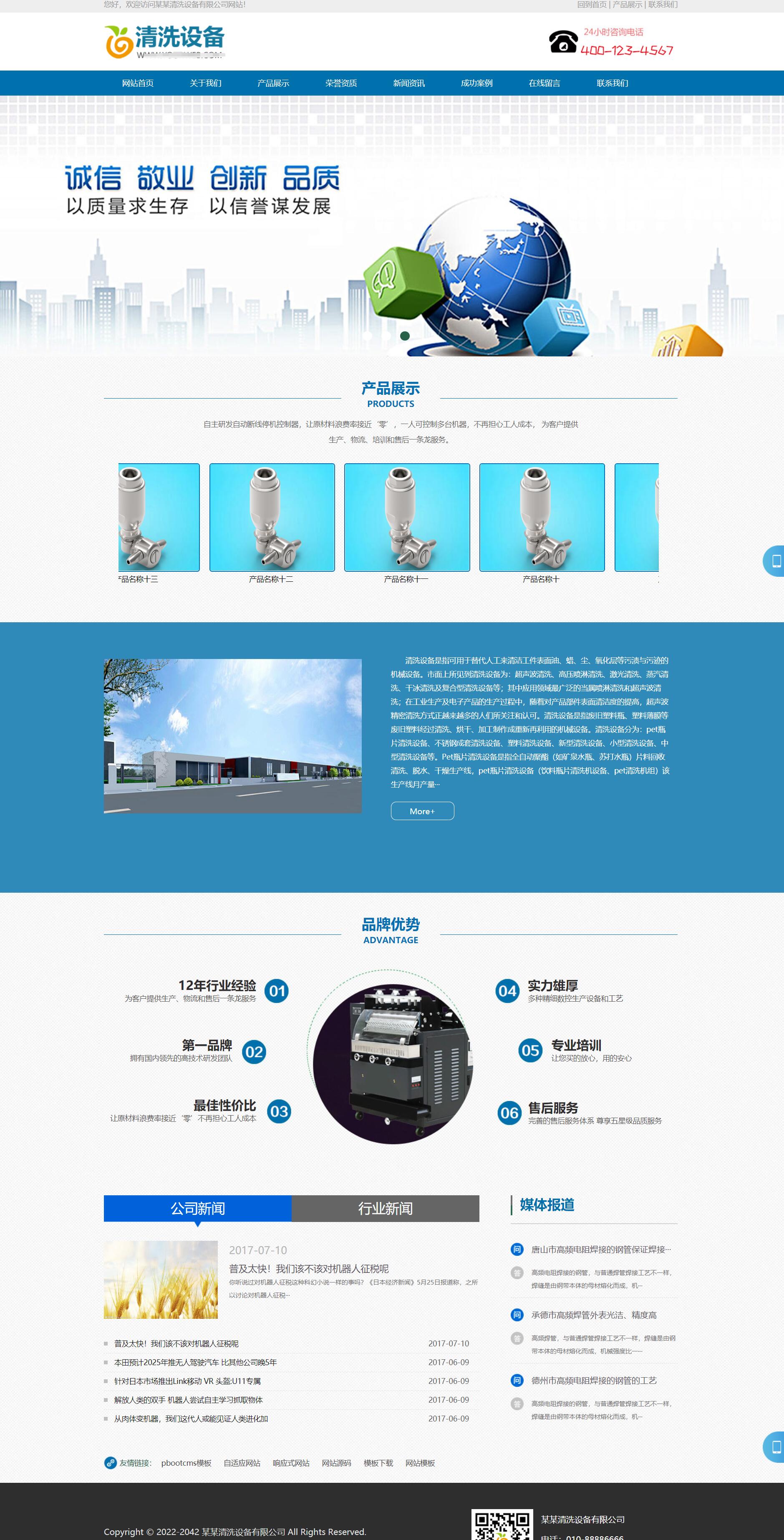 设备清洗清洁球设备企业pbootcms网站模板 清洗机器设备生产网站源码下载