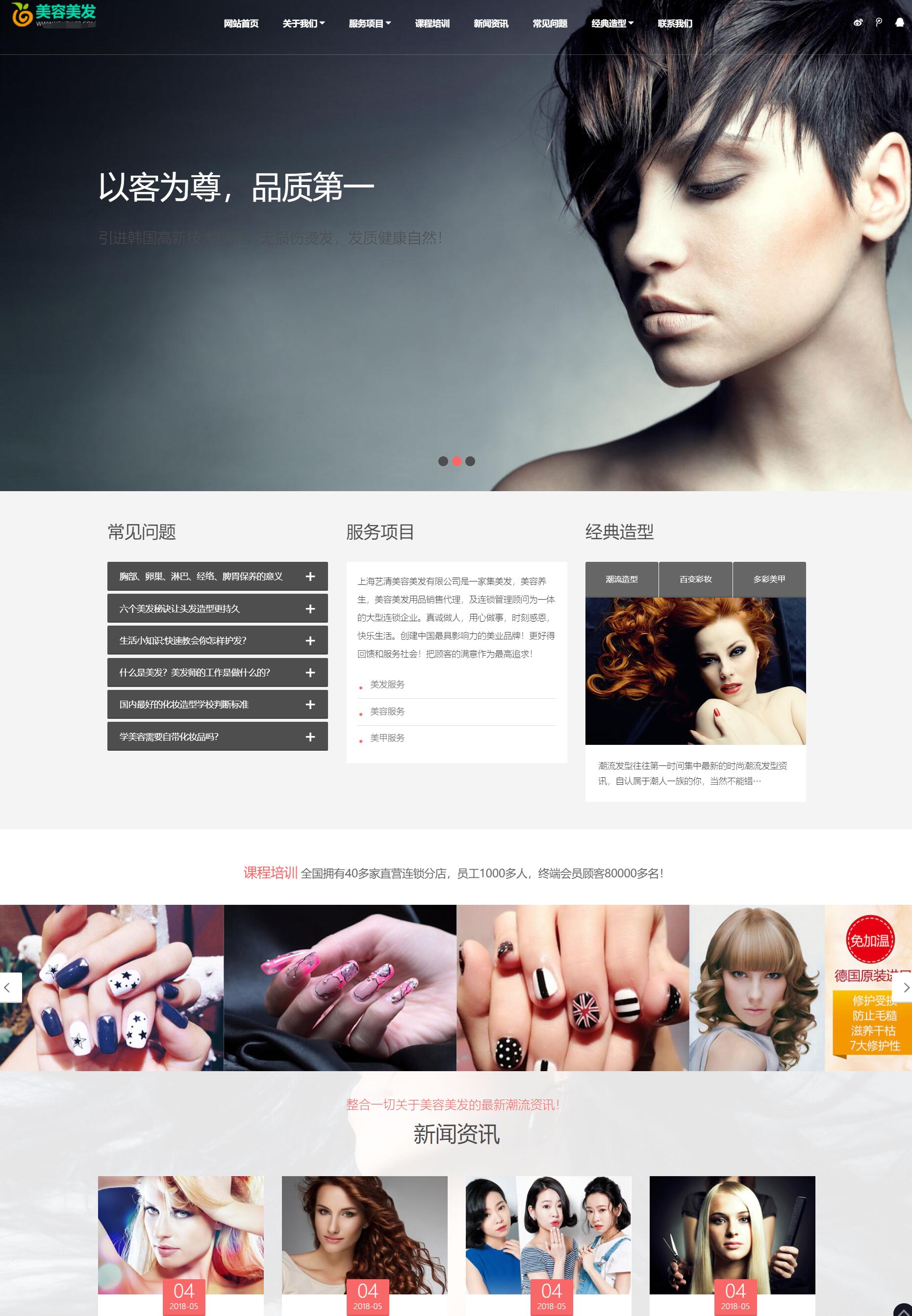 美容养生美发连锁pbootcms网站模板,美容美甲连锁机构网站源码下载