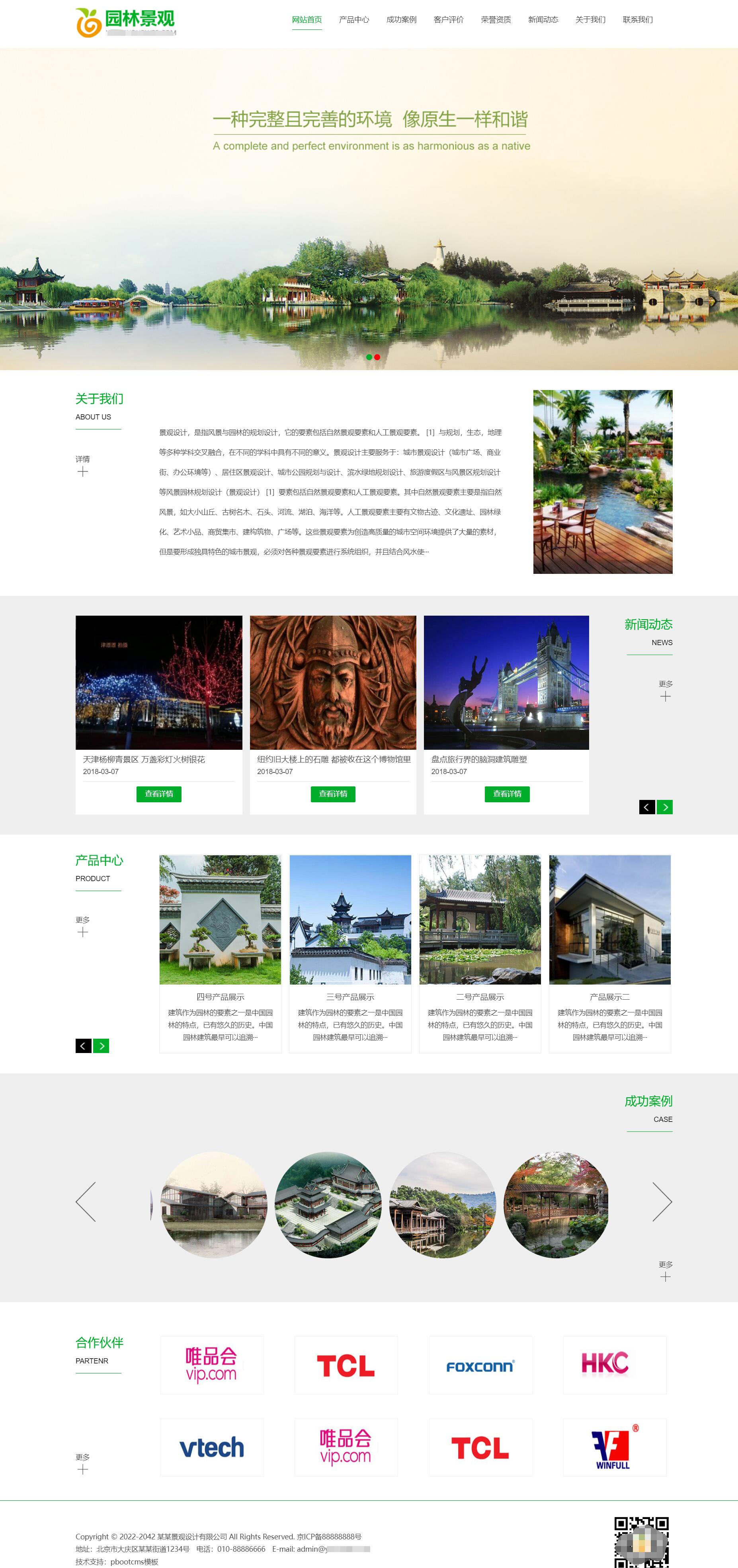 园林建筑绿化网站pbootcms模板 城市规划风景园林景观网站源码下载