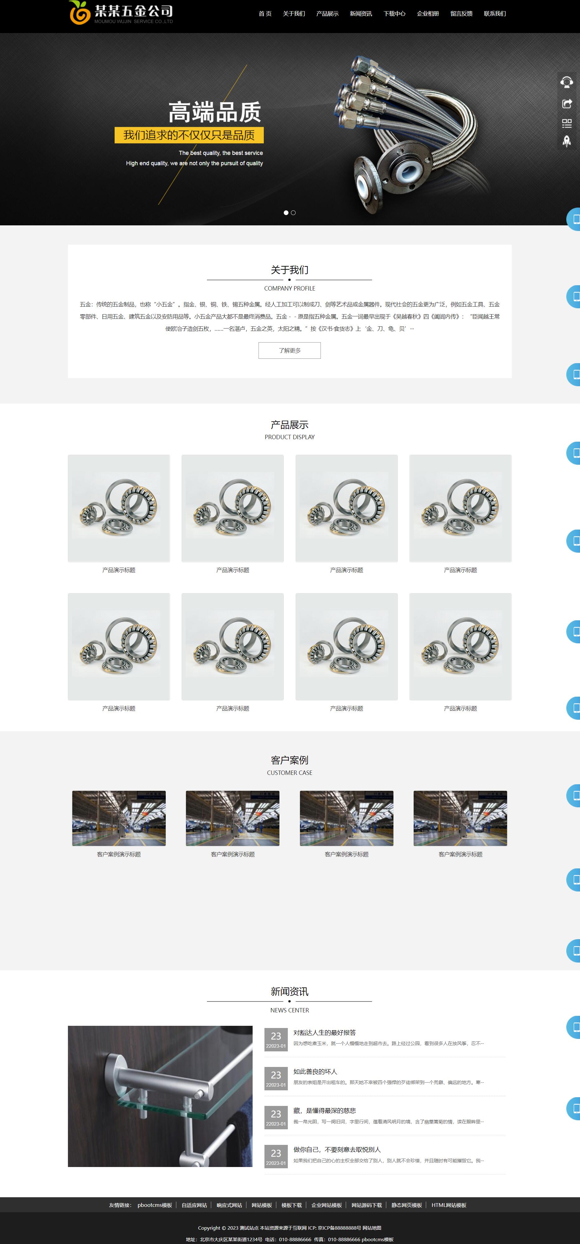 五金软管三通铰链pbootcms网站模板,合页装修材料厨卫用品网站源码下载