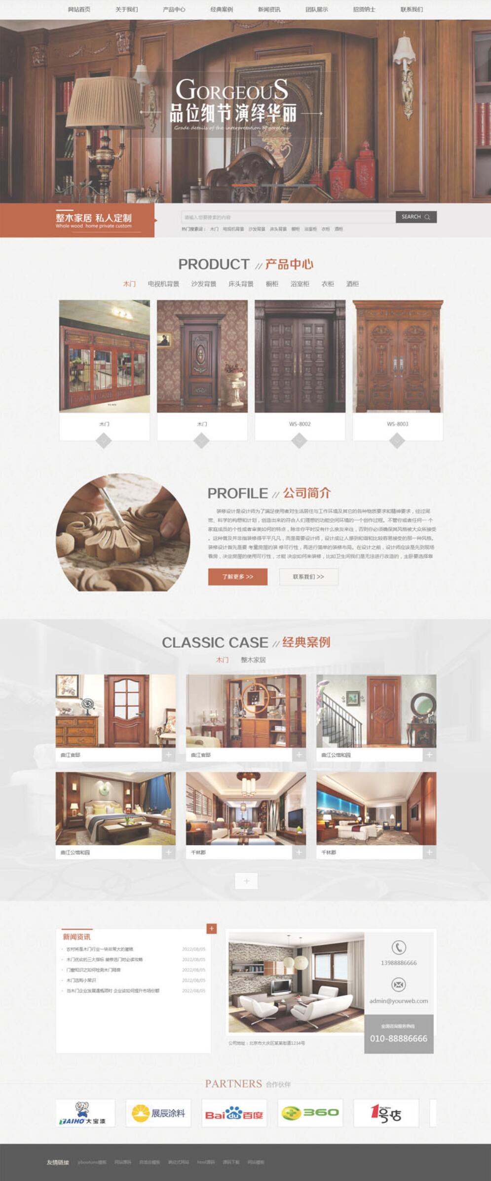 古典木材木门网站模板,门业木业网站源码下载