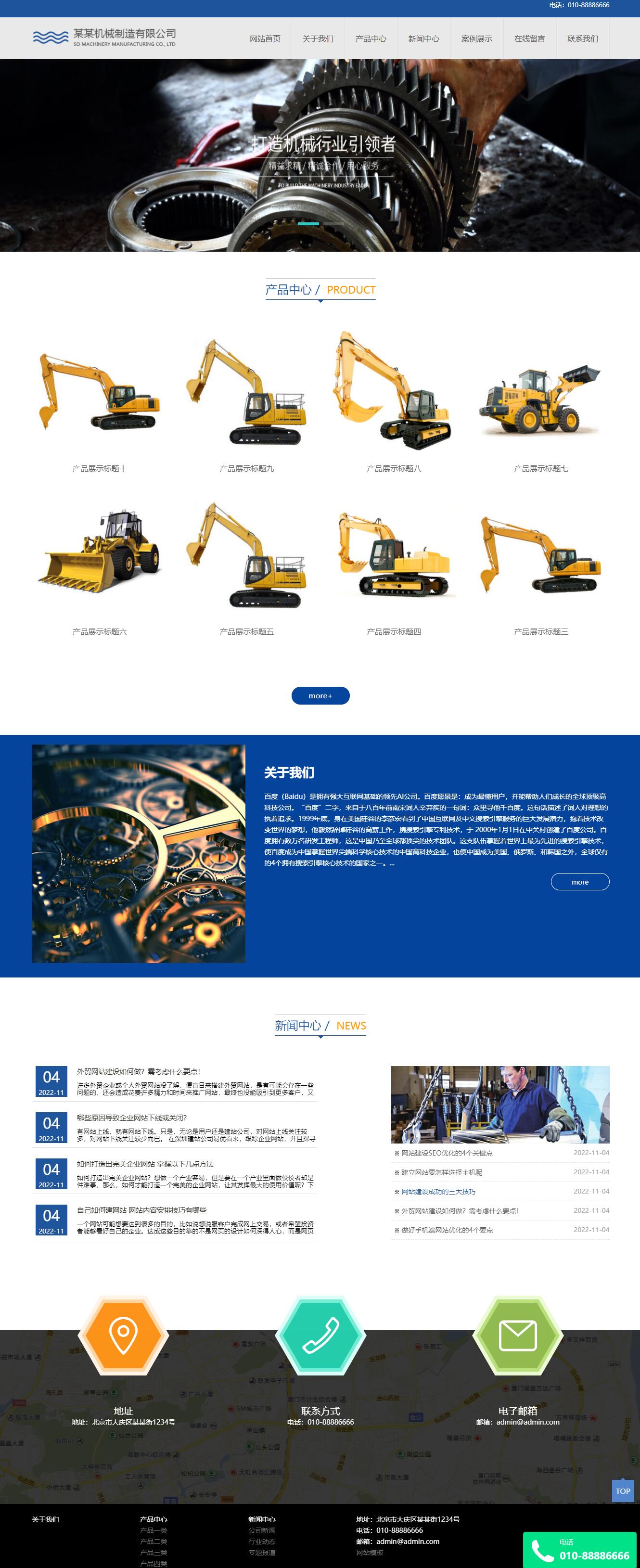 大型机械工业制造类网站pbootcms模板 重工机械设备制造公司源码下载