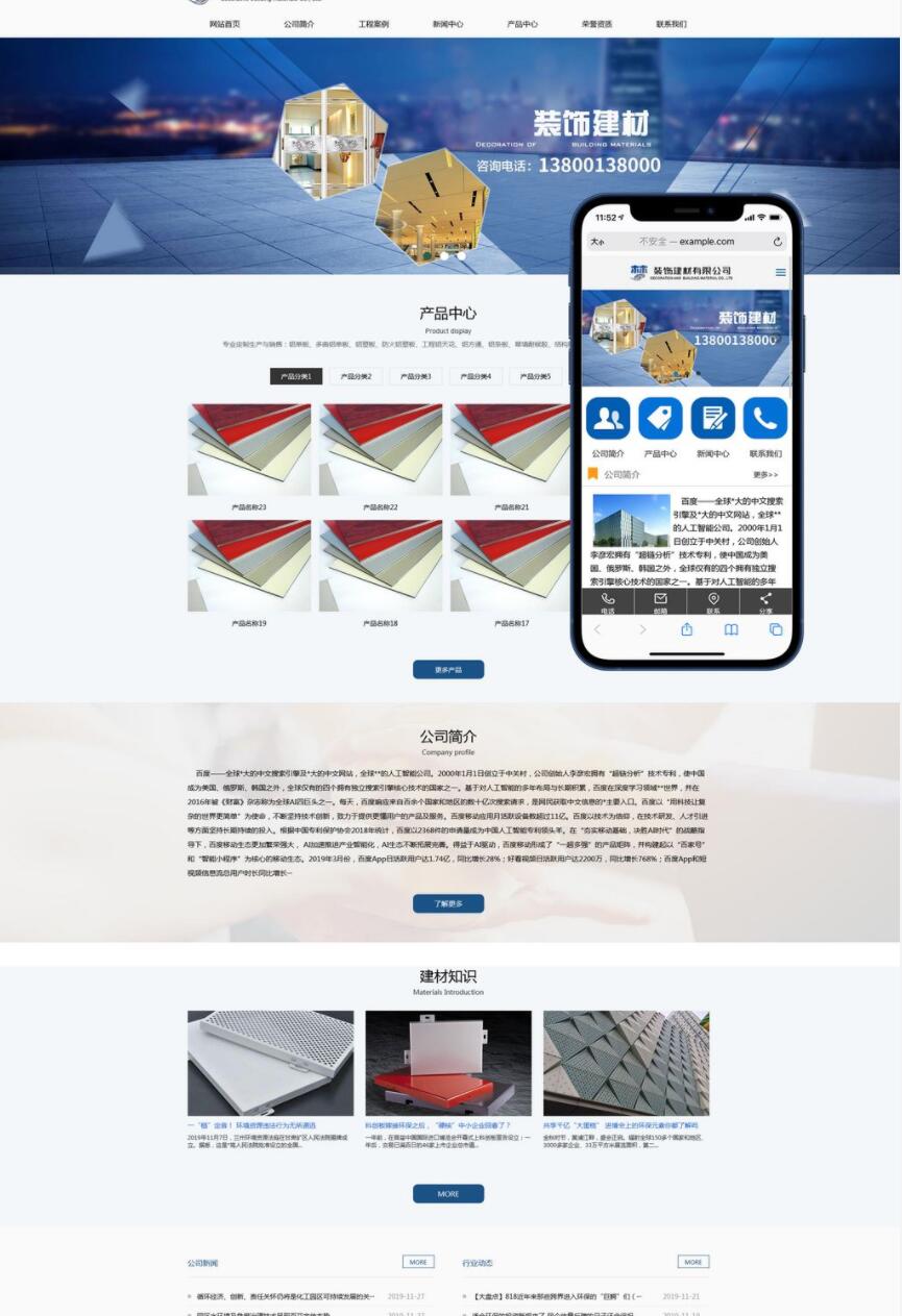 蓝色大气SEO优化装饰建材科技公司网站pbootcms模板