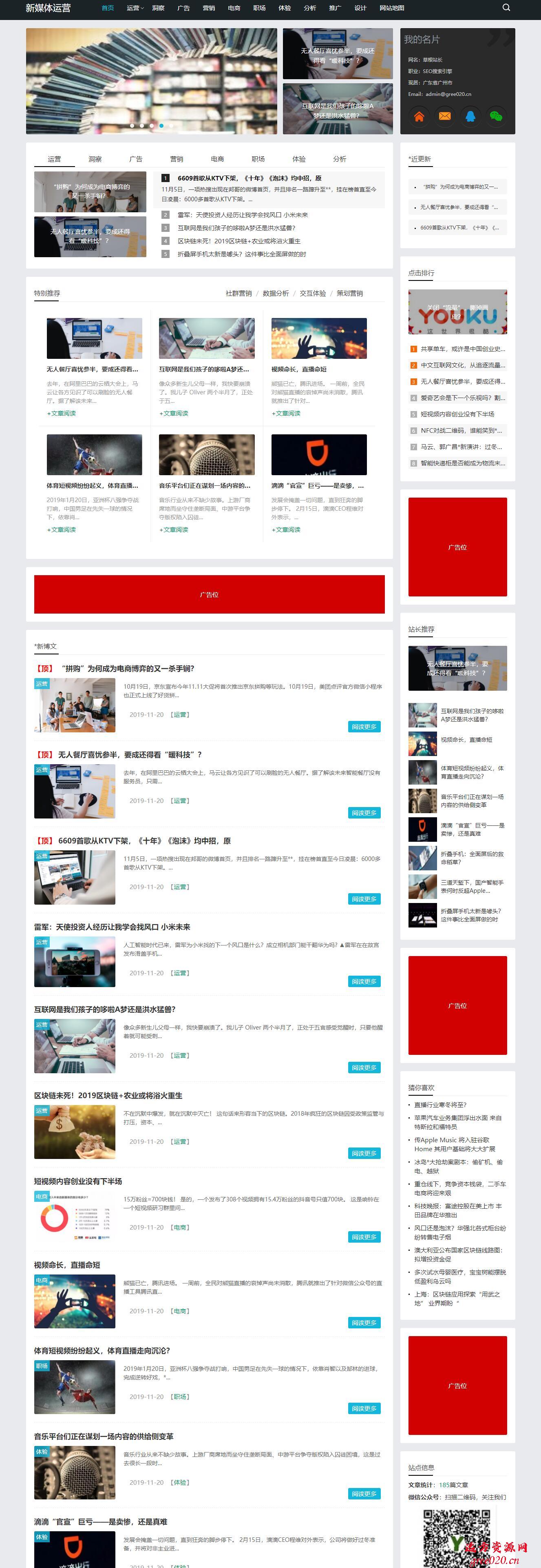 响应式新媒体运营资讯类网站pbootcms模板