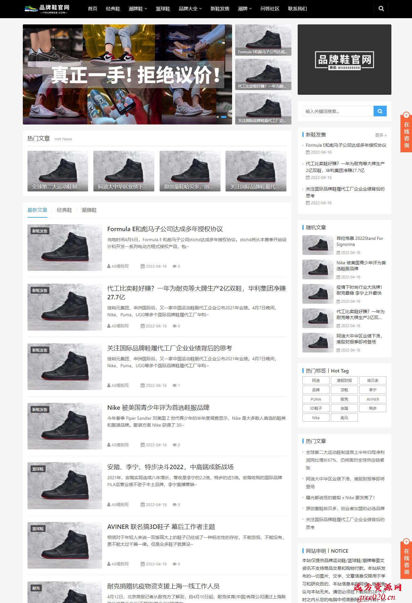 响应式黑色大气品牌鞋子货源资讯网站pbootcms模板