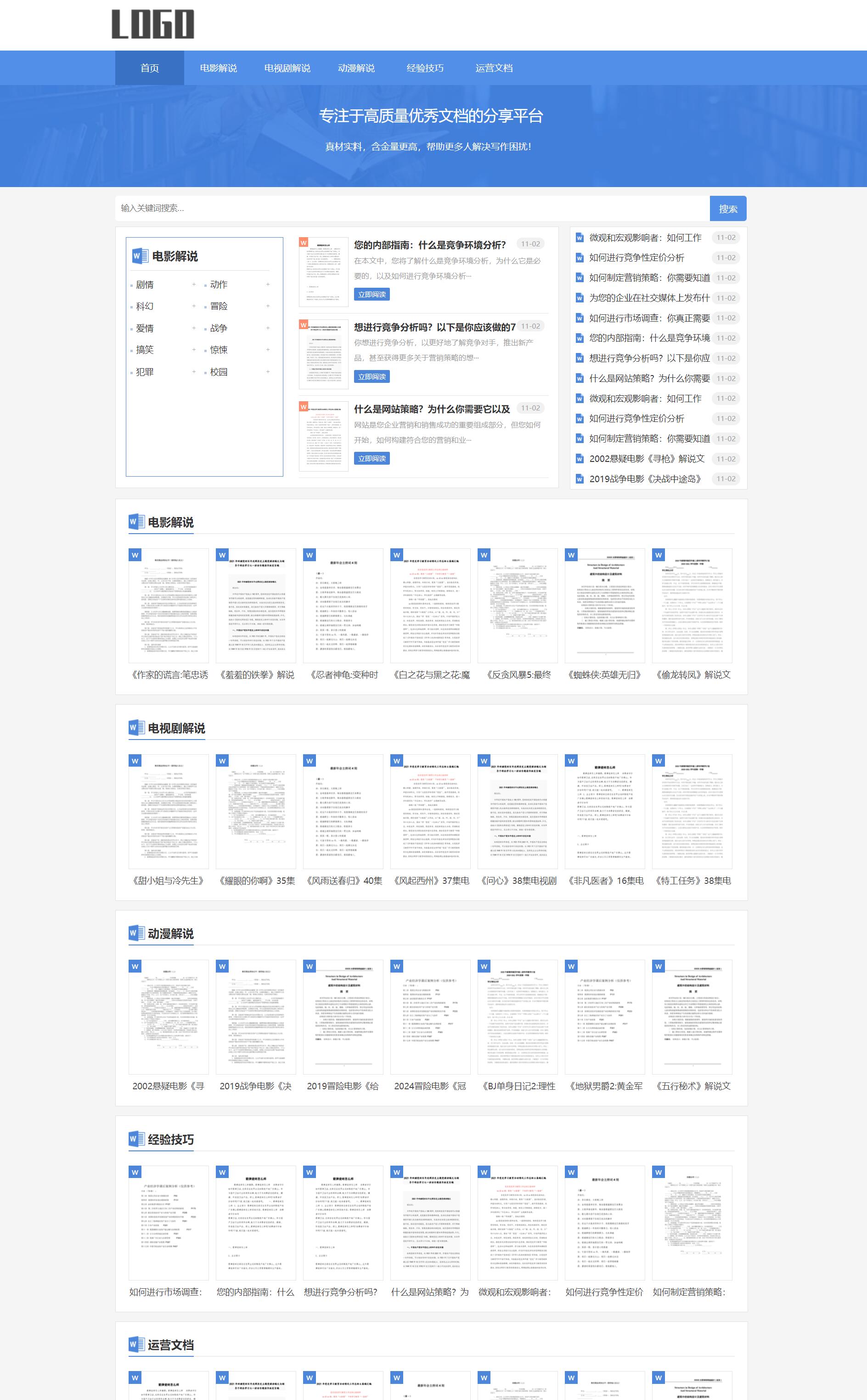 电影解说文案网站模板 word资源网站源码下载