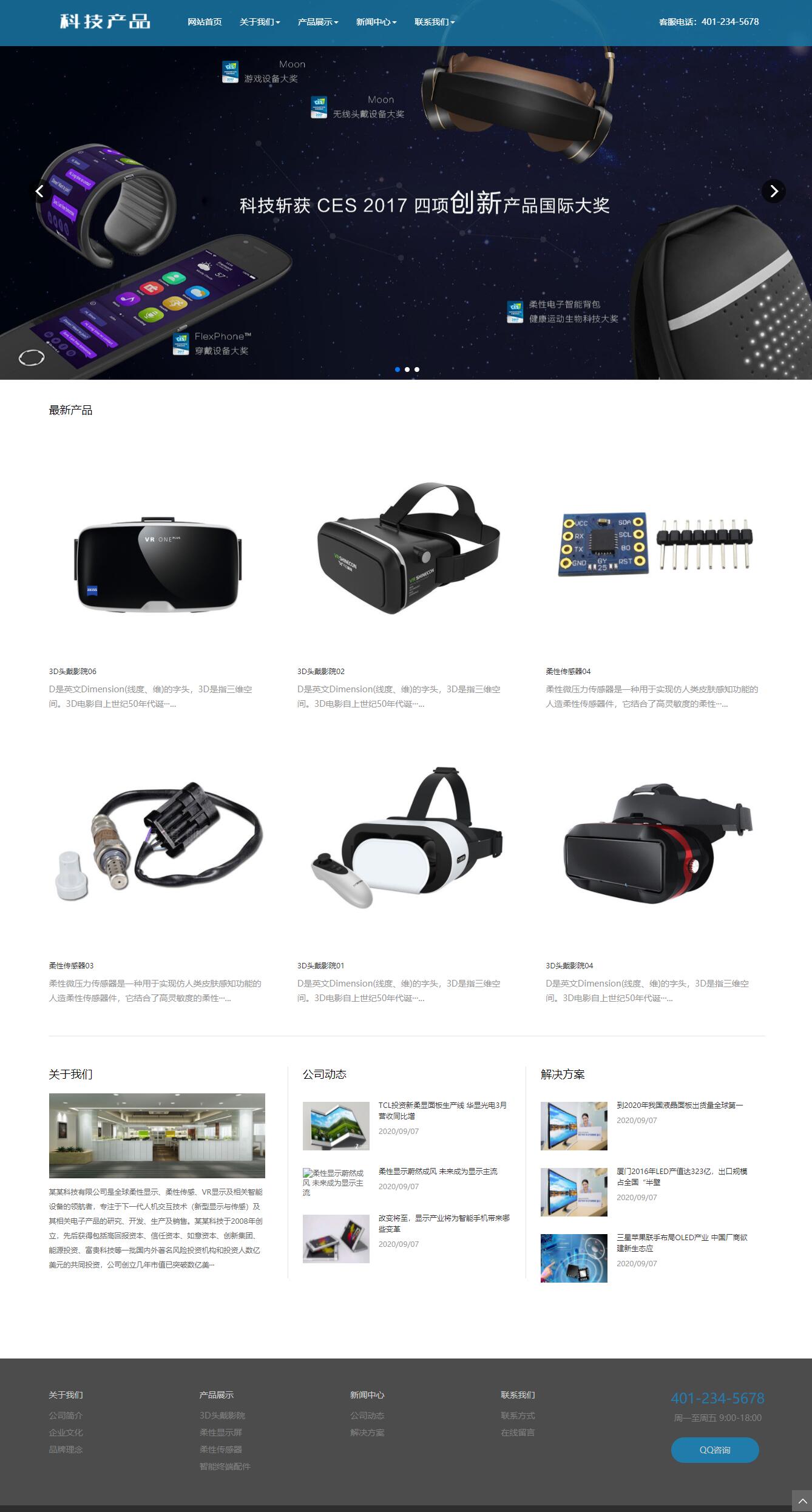 科技产品传感器蓝色智能电子产品网站pbootcms模板
