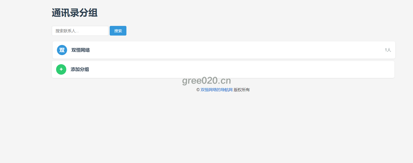 上传虚拟空间就可使用。首页输入密码,首次登录密码自己设置,保证了通讯录数据安全,首页列表分组,可搜索联系人,联系人页面头像和名字显示,详细信息页面。上传头像功能,删除联系人分组功能等