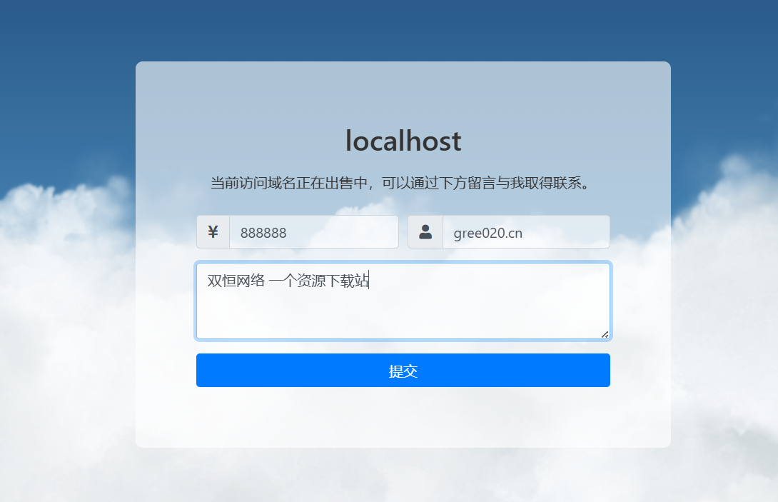 一个简单而美观的网页来展示域名的出售信息,并提供一个表单供用户填写他们的报价和联系方式。这个页面的实现主要在index.php中完成。 在index.php中,我使用了Bootstrap 4来快速构建响应式布局,并引入了Font Awesome图标库来美化表单输入框。页面的核心部分是一个表单,用户可以在这里输入他们的报价、联系方式以及留言信息。