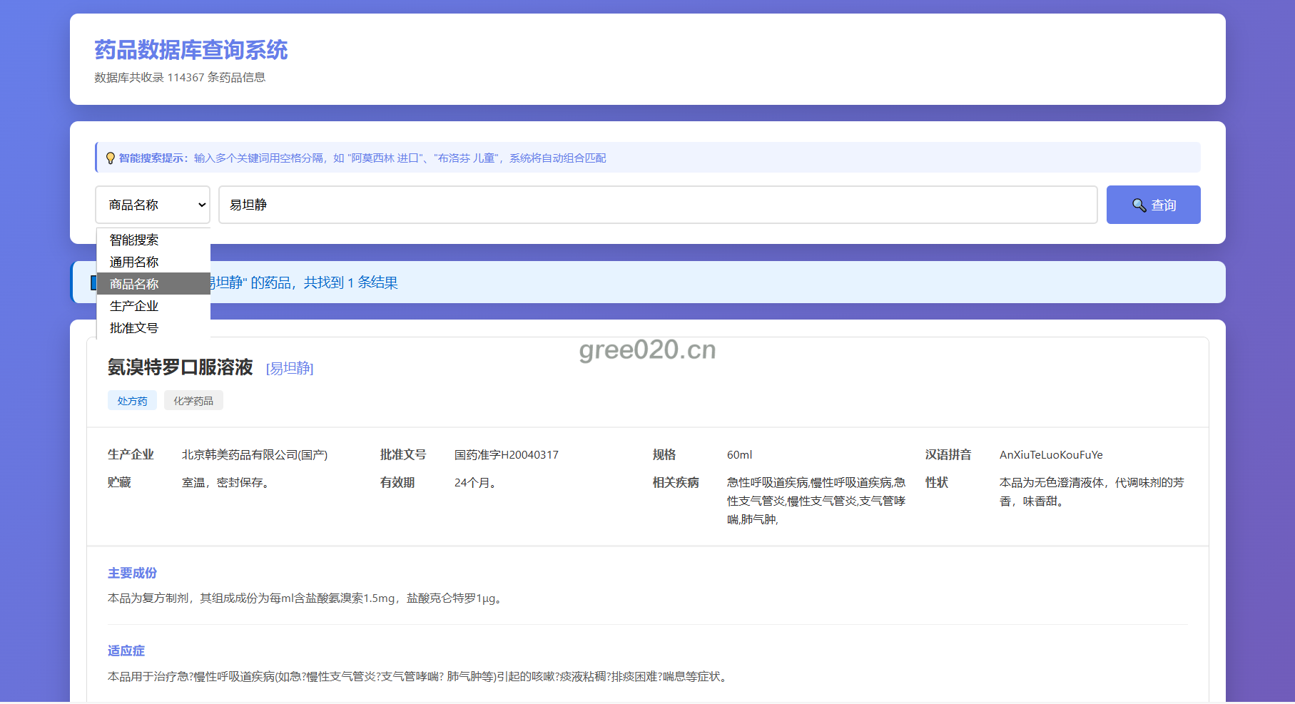 药品说明书查询系统源码使用的是大佬YMXuan的数据库,数据库大小442MBPHP版本7.0以上即可,兼容手机端显示查询。