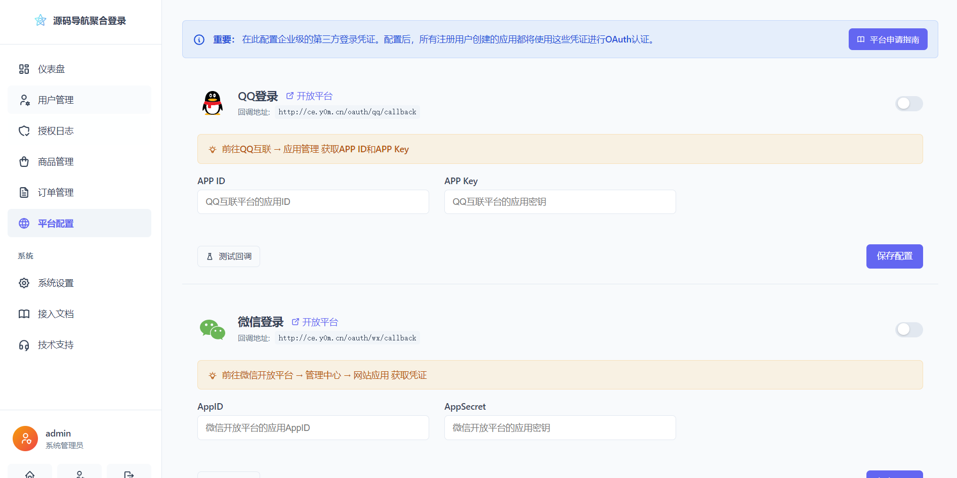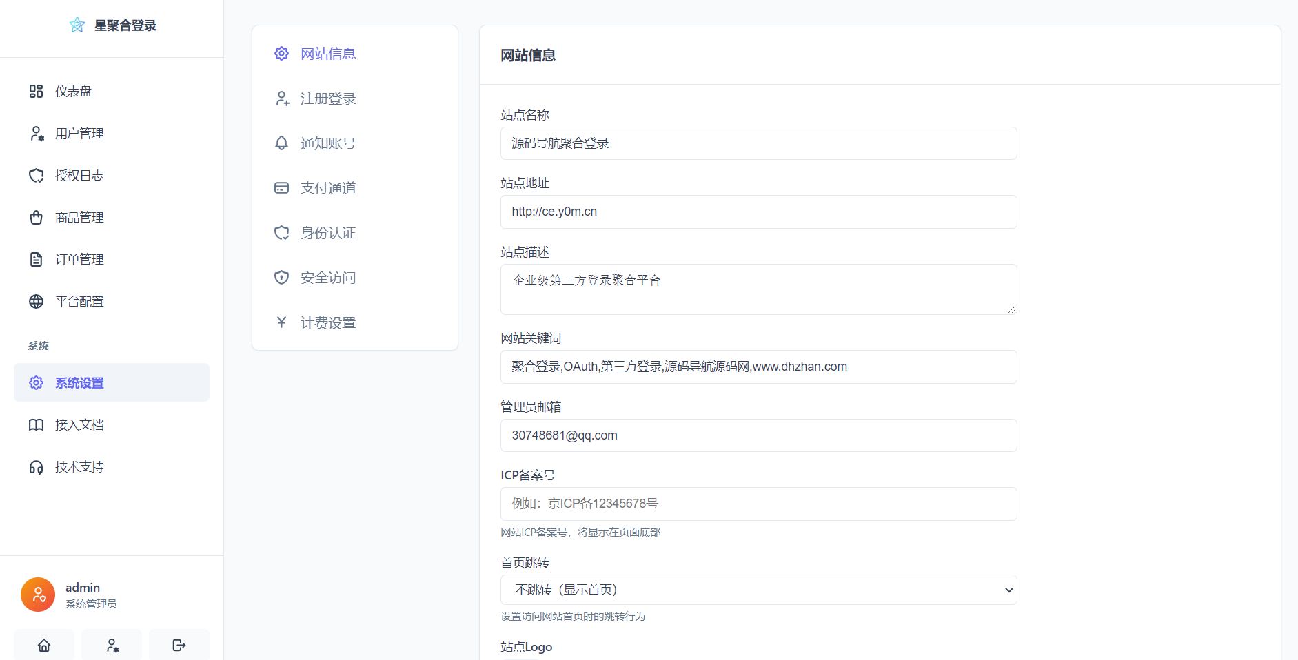 聚合登录系统源码
