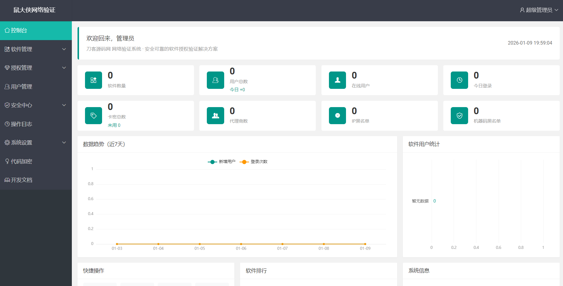 一款简单易用的软件授权验证系统,客户端对接简单,支持多种开发语言。