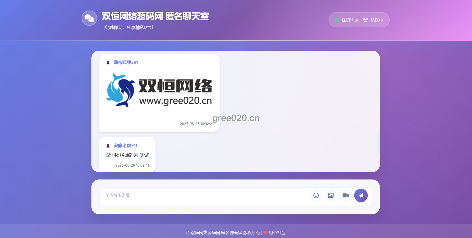 在线聊天室系统源码 | 全开源轻量化一款在线多人实时聊天室系统,支持表情包、图片、视频发送,支持每次发送消息随机用户名,无需数据库更新日志:修复视频无法上传问题安装教程:测试环境:Nginx + PHP7.41.上传源码到网站根目录解压2.访问域名即可进入前台3.给文件权限777首页消息记录在chat_data.json文件里可清理