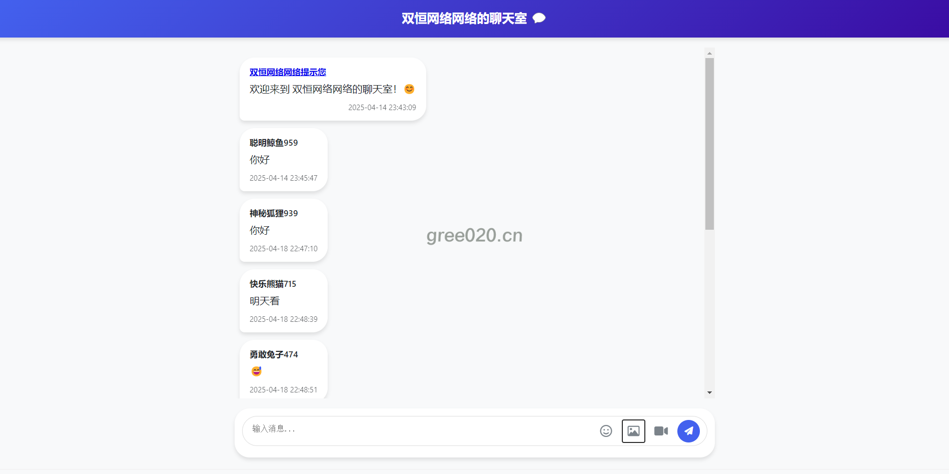 一款在线多人实时聊天室系统,支持表情包、图片、视频发送,支持每次发送消息随机用户名,无需数据库,无后台测试环境:PHP7.4