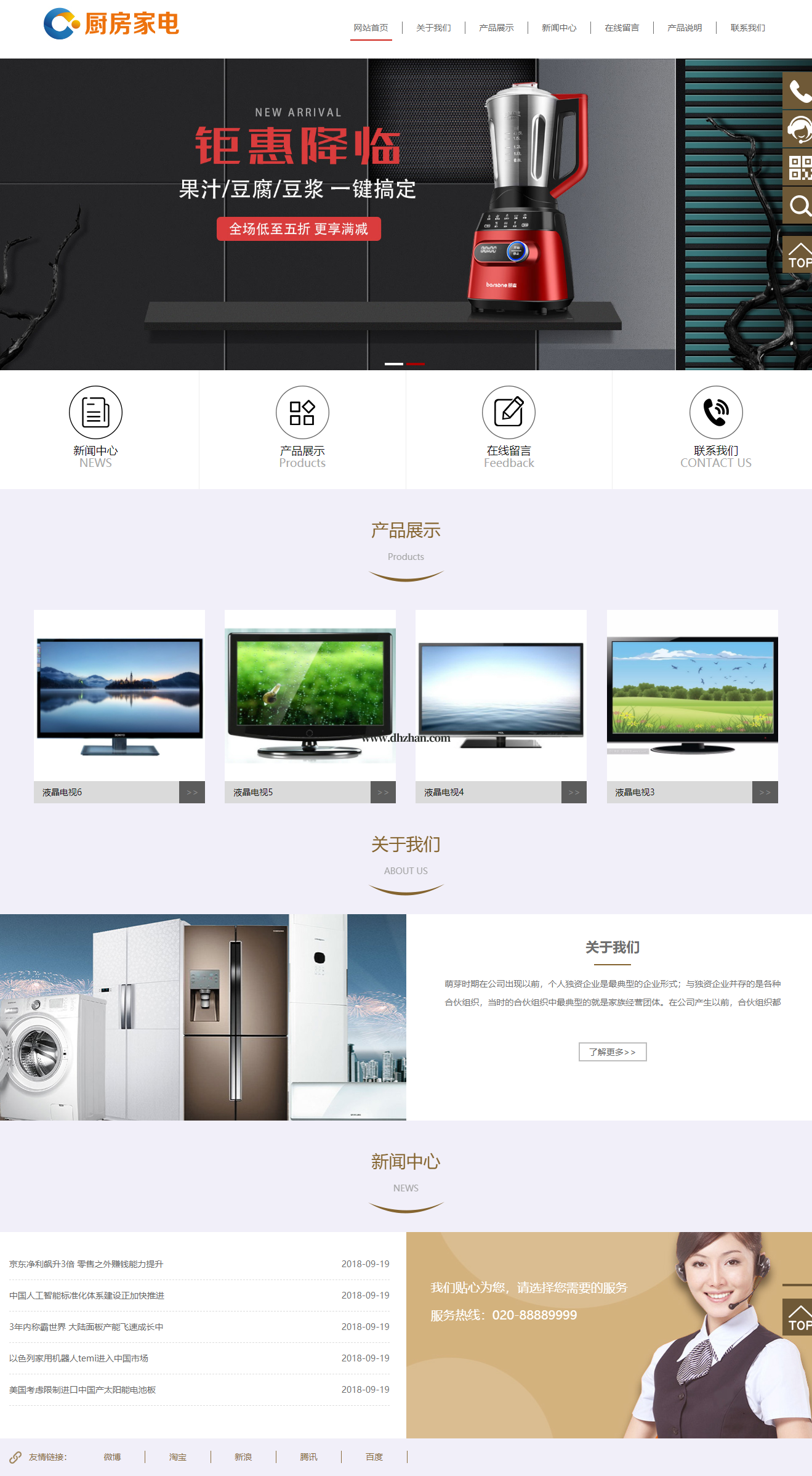 家居厨房电器用品类网站模板,家用电器类网站源码下载