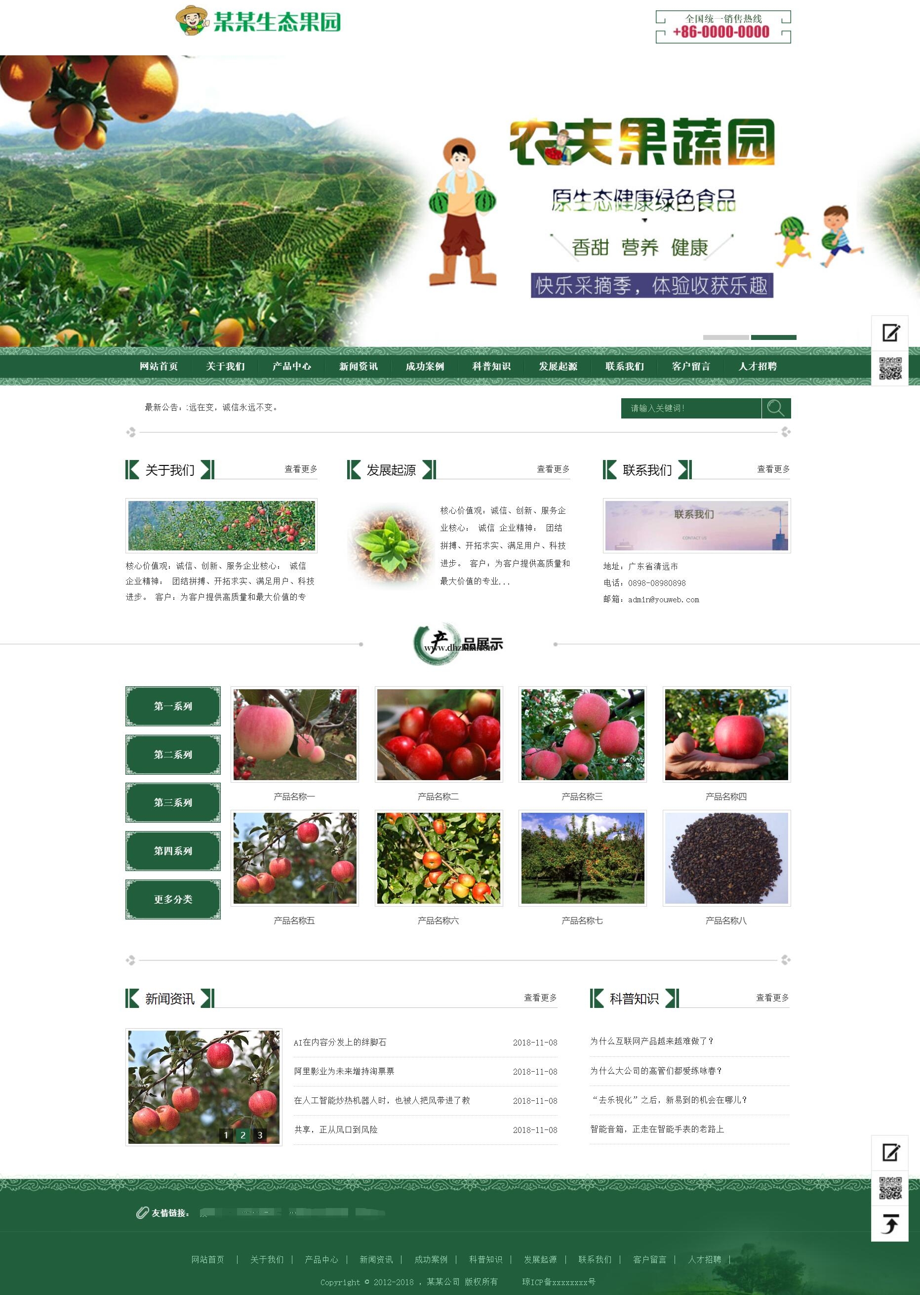 果园果树种植园网站模板,农业林业网站源码下载